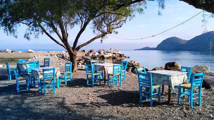 To the east, you'll find the beach known as Aliki, which has been shaped by the presence of an old marsh and a small stream that flows into the sea.